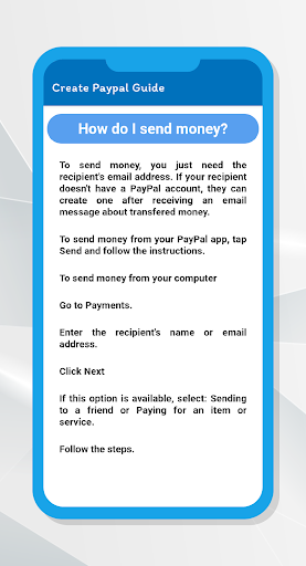 This application contains complete information about how to create PayPal account. There are a lot of people who want to use PayPal but they cannot create and use PayPal account. PayPal is an American company which is providing online payment transactions and it is operating over worldwide. You send money Very easily and safely.