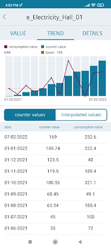 • Calculation of the consumption value based on the counter value