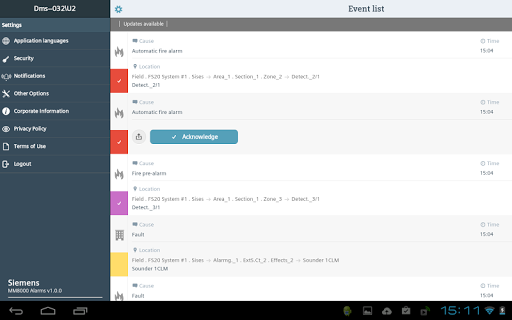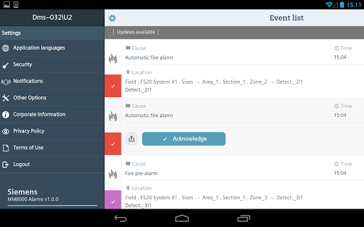 MM8000 Alarms app lets an operator view and handle the alarms of a connected Siemens MM8000 Management Station.