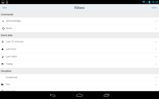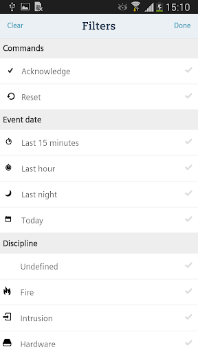 2) filtering of the alarms based on category, discipline, state and time criteria