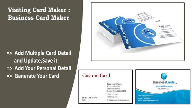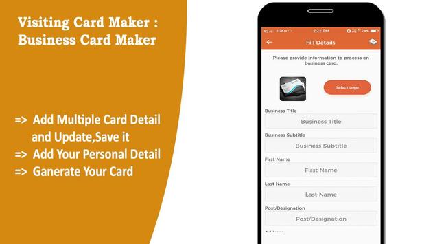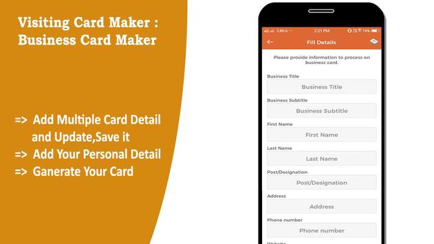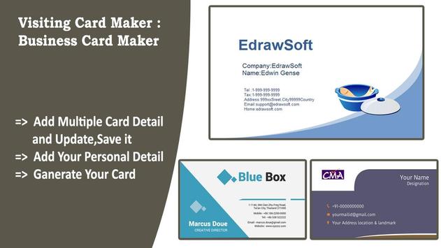 Visiting Card Maker is a business card maker app for all type of visiting card makers.. It allows you to create your own business card in few minutes.Visiting card contains a lot of professional logos which you need to make your card more stylish and unique.
