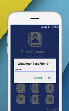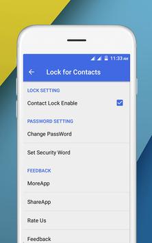 Lock For Contact tend to be "lock for contacts" to prevent people to see your contacts intentionally or by chance because of having contact locker such as "lock for contacts" to help you to secure your contacts or hide contacts once.In addition to this it is free contact lock you don't need to pay anything it is enough to install it to benefit of advantages.