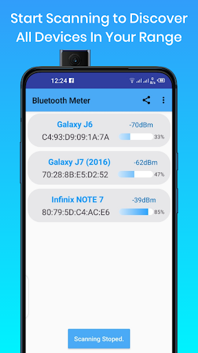 This app detect Bluetooth signal strength around you and show a convenient line graph of the signal strength. Find missing Bluetooth devices and view your current Bluetooth signal strength. Bluetooth Signal Strength Meter and Analyzer will analyze your nearby devices with the help of Bluetooth signals to find all connect devices. Bluetooth scanner feature will scan Bluetooth devices and show all the characteristic on Bluetooth Meter.