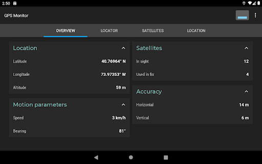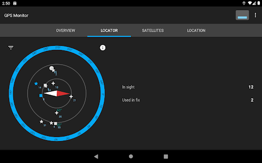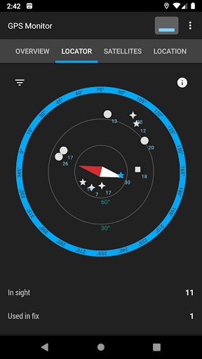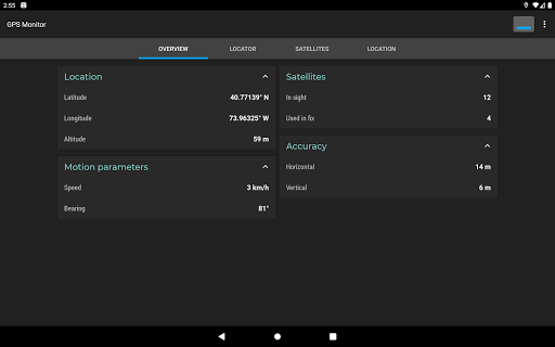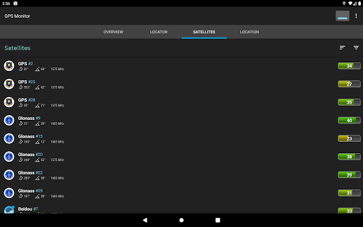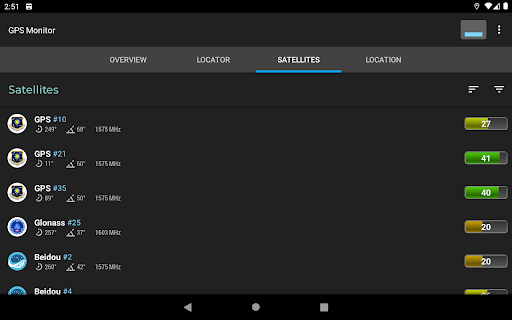 GPS Monitor displays detailed information about visible satellites and location data provided by navigation systems.