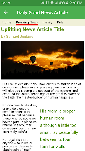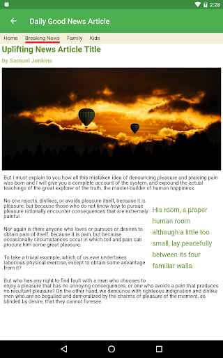 Had enough of negative news stories? The Daily Good News app brightens your day with only positive news from around the globe. You'll love the upbeat and inspiring news reports delivered straight to you!