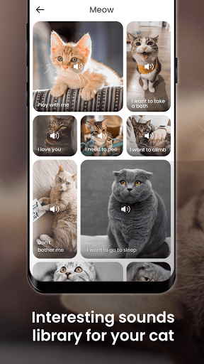 back, our Human-to-cat-translator - Cat sounds, My cat also bring to you abundant real cat sounds and cat noises. They are pet phrases which are your kitten’s popular daily talking, inner voice and so on.
