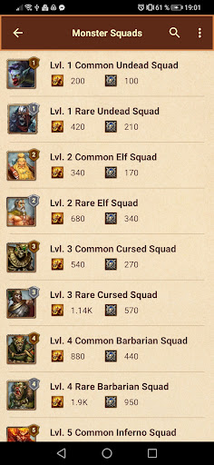 1. Information about monsters and troops to use to attack.
