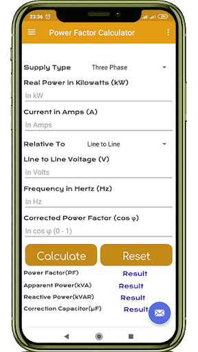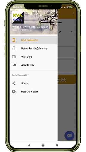 We have added Kilo Volt Amp(KVA) and Power Factor(PF) functions for quick calculation. For many more calculations, you can download our "ElectricalCalculator - Engineering Math" app.