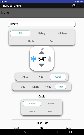 System Control is a web browser-based application to support Wifi communication with LR125 from SilverLeaf Electronics, Inc. The LR125 implements a web server and RVC interface. In this way, the users can monitor and control all the devices on the RVC bus in their RVC enabled vehicles from the web browser. The beauty of System Control is to supply a quick and easy connection to the LR125 web interface.