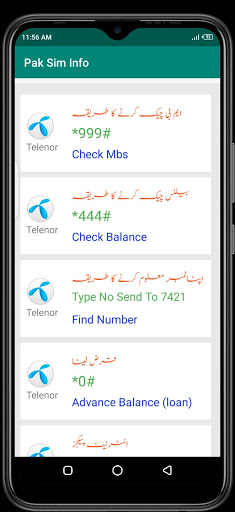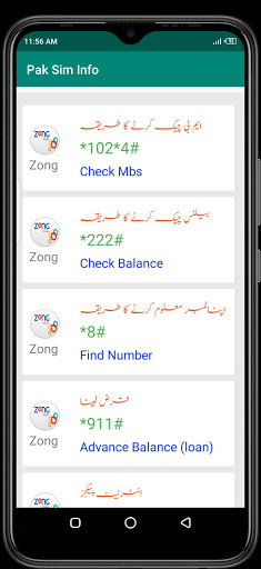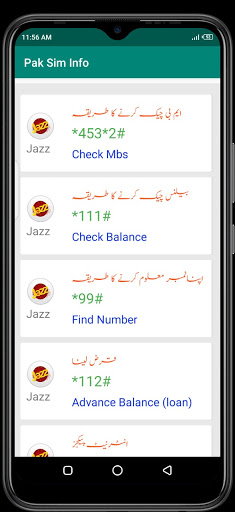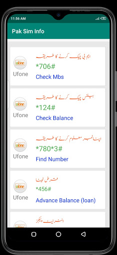 Pakistani SIM card codes such as MB checking , Send money from One SIM card to Another Sim Card and Get Loan