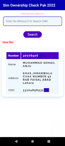 Sim Ownership Check Pak 2022 is a free app that contains more than 150 millions phone number information into the Database. Sim Ownership app has an ID card information option in which you can get information of any Pakistani ID card and also check how many numbers on this id card.