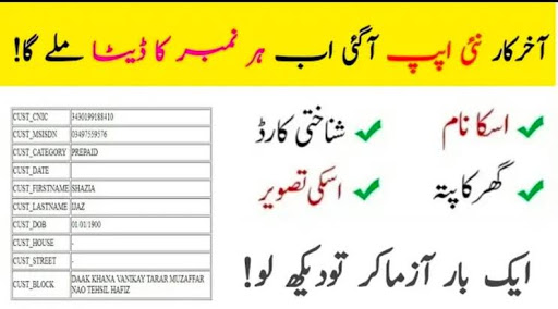 With this app you can get sim details like address, cnic number and other numbers of person.