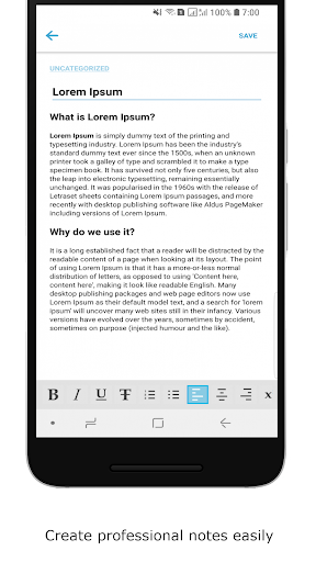 ✓ Your data is safe into your device. Neither this app is using the internet nor we have any server to sync the data. So whatever you save will never leave your device.