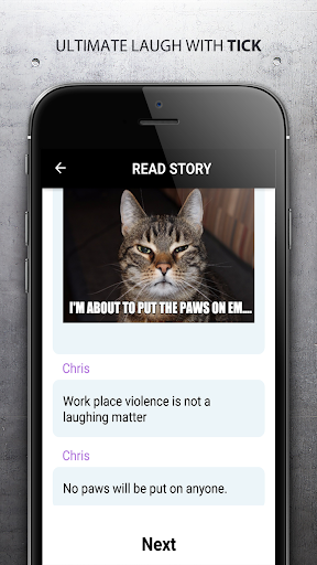 "Tick - Chat Stories" brings in the best sense of humor in all genres. Follow "Tick - Chat Stories" and get ready to get terrified and laugh out loud at the same time with amazing collection of chat stories. Never get bored and relieve your stress with "Tick - Chat Stories". The app will keep you hooked up for hours with its awesome collection of text messages in the form of short and amazing chat stories.