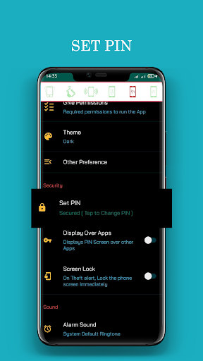 • First set your PIN. Go to Anti-Theft Security Alarm settings screen and select Set PIN.