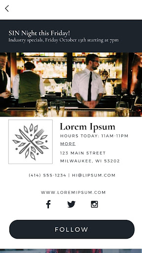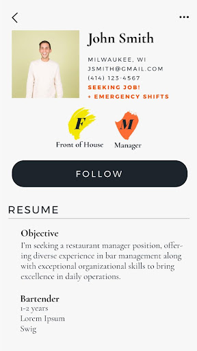 Finding a gig in the service industry isn’t like a typical job hunt. Service Industry Network connects you with owners, managers, and other employees to make your skills known. Post your resume and show off your experience to find your next job. Follow your favorite bars and restaurants to learn about job opportunities tailored to front-of-the-house, back-of-the-house, management, emergency shifts and more. Currently available in Wisconsin.