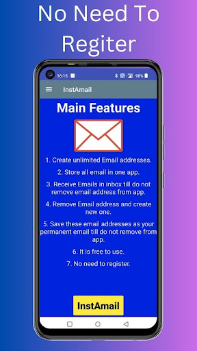 Introducing InstAmail - the ultimate app for creating unlimited email addresses and storing all your emails in one convenient location. With InstAmail, you can create and save multiple email addresses without the need for registration or any fees.