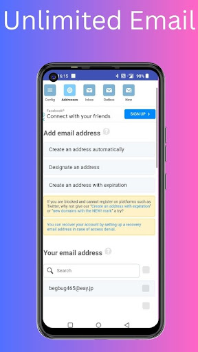 The app features a user-friendly interface that allows you to create and remove email addresses with ease. Once you've created an email address, you can receive emails in your inbox until you choose to remove it from the app.