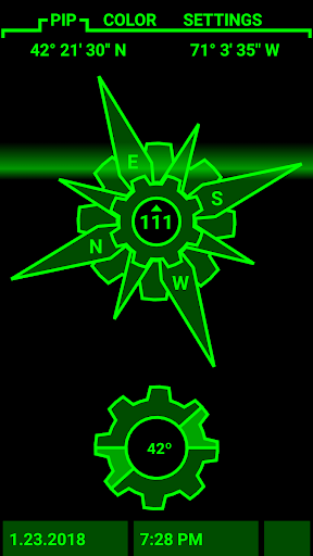 PIP (Peripherals In Phone) is a compass and level / angle finder app to help you traverse the wastelands, after the fallout from the great war (future). So install this app, grab your favorite cola, and head for high ground!