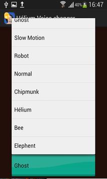 in Hélium voice changer you can listen your voice with a lot of effect like(Robot,Elephent,ghost,bee,Hélium,Monster,slow motion,...)