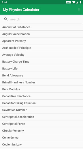 My Physics Calculator contains 134 Calculators, that can quickly and easily calculate different physics and engineering parameters. Calculated values and results can be shared to social media, mail, messages and other sharing apps. Automatic & Accurate Calculations and Conversions. A Complete Physics and Engineering Dictionary.