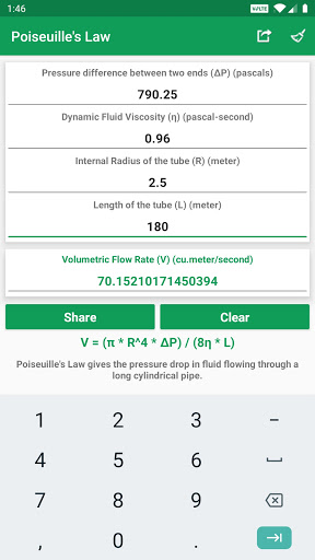 • Calculated values and results can be shared to social media, mail, messages and other sharing apps..