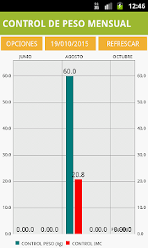 Esta aplicación cuenta con una interfaz inicial, donde puedes calcular tu IMC (Indice de Masa Corporal) adecuado según tu Peso y Talla, de igual forma tu RMB(Ritmo Metabólico Basa).La aplicación llevara un control mensual de estos datos, y los podrás observar en la opción "CONTROL" mediante gráficos, que te mostraran