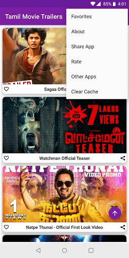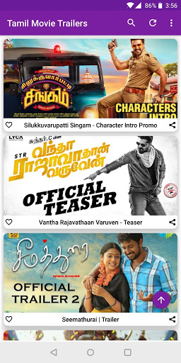 Tamil Movie Trailers provides you an enthralling option for watching movie trailers, teasers, promos, first look and motion posters of tamil/kollywood movies, one of the leading movie industries in world cinema.