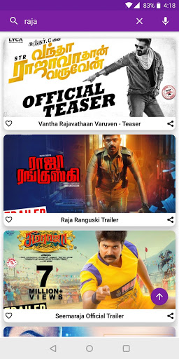 • Latest set of trailers are listed in the main screen. To view old trailers, you can use text and voice search options.