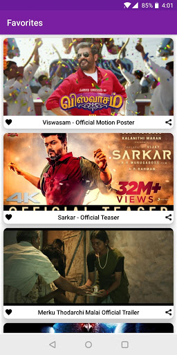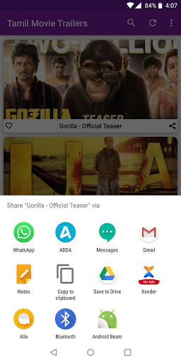 • Option to share every trailer details/links in social media, mail, messages and other sharing apps.