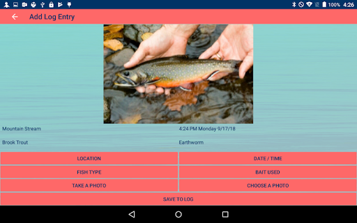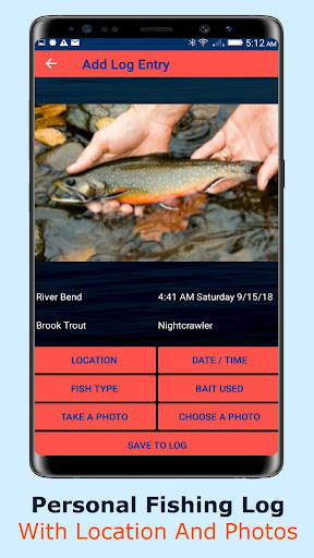 You can photograph your catches and put them in the Fishing log along with the date, time, location, etc. Fishing Log photos can be shared on Facebook and Twitter.