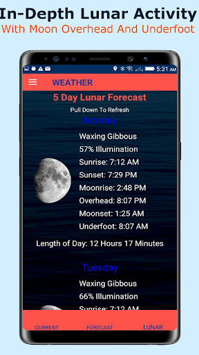 The LUNAR tab displays the lunar activity in either 12 or 24 hour time format, depending on what you've chosen on the settings page.