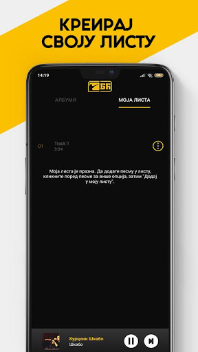 - নিজেকে একটি তালিকা তৈরি করুন (আমার খেলার তালিকা) এবং আপনার পছন্দের হিটগুলি শুনুন যখন আপনি কোনও ইচ্ছাটি চান (প্লেয়ার ফোনে অন্যান্য ক্রিয়াকলাপের পটভূমিতে কাজ করে)।