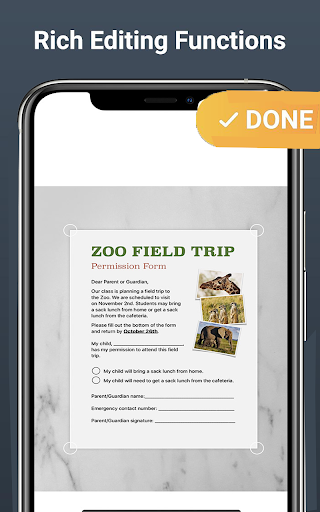 Users can use the phone's camera to clear scan and manage all kinds of paper documents, receipts, notes, invoices, whiteboard discussions, business cards, and certificates. The scanner app lets you rename & organise your Documents in a folder, or share it using a fast scanner app.