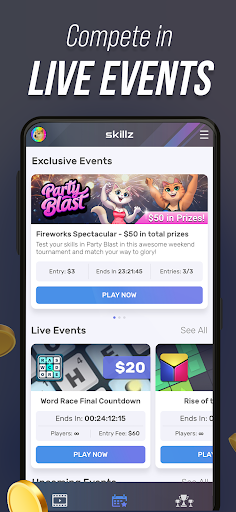 Skillz Games offers one central portal to endless entertainment. Discover, watch, and compete in hundreds of mobile events in thousands of games!