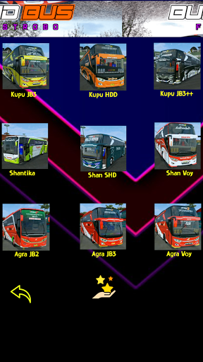 Hier wordt gezocht naar de toepassing van de Loyal Bussid Mania Player, dit is een verzameling Cool Strobo Livery MOD-bussen en heeft veel verschillende facefilt veranderingen dan normaal. Omdat we nu veel nieuwe busmodellen hebben, zoals volledige Strobo Bus Bussid Mods en -variaties of Mod Full Strobe-bussen en poppen, hebben extra wijzigingen die vrij interessant zijn, zoals een meer sportieve bumpervorm, het display van het interne ingebrachte dashboard .