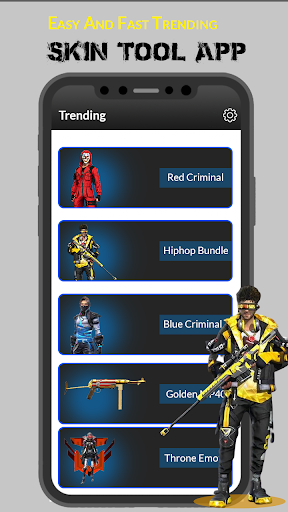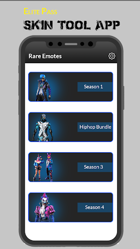 Skin for free fire is a simple app that allows users to earn Elite Pass, Emotes, Bundles, and Gun Skins for entertainment purposes.