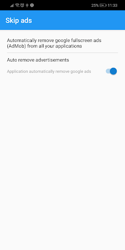 This application allow to automatically remove and mute fullscreen Ads from all your applications.