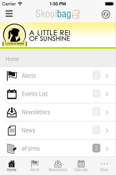 A Little Rei of Sunshine, Skoolbag App for parent and student community. Download this App to be kept up to date with everything that is happening at ALROS. It features Events, News, School Enews Newsletters,Documents, and push notification alerts direct from the school.