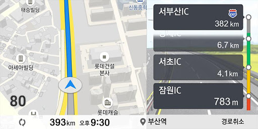 경로 안내 중 백그라운드 상황일 경우 TBT(Turn By Turn), 안전운전정보, 속도 정보를 제공합니다.