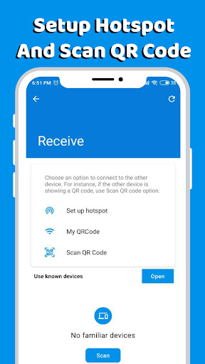 Extremely simple and speedy smart share app for android simply start application and press get button from the home screen you will figure out how to arrangement hotspot, after that you need to filter that auto created qr on other android phone so both phones got connected. After associated you can send any apps, videos, photos etc. Smart share app can use there is no restriction of information sharing.
