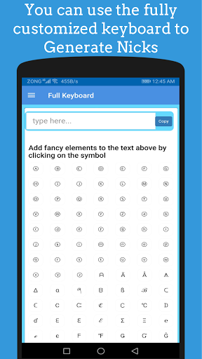 Using this application you will be able to create stylish fancy Nicknames for your Favorite Game and for Sharing on Social media Network with friends to amaze them.