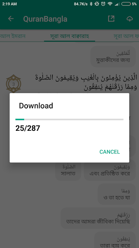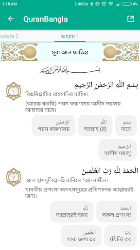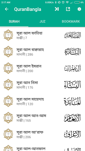 Bangla Quran เป็นแอปพลิเคชั่นสมาร์ทโฟนที่ออกแบบมาเพื่ออำนวยความสะดวกในพื้นเมือง ลำโพงของความสะดวกสบายบังคลาเทศกับคำสอนอันศักดิ์สิทธิ์ของอัลกุรอาน แอปพลิเคชั่นนี้ฝังอยู่กับการทับศัพท์ที่แท้จริงและการอ่านเสียงการทับศัพท์และการอ่านเสียงของทั้ง 114 Surahs of Quran E Kareem