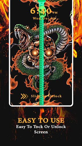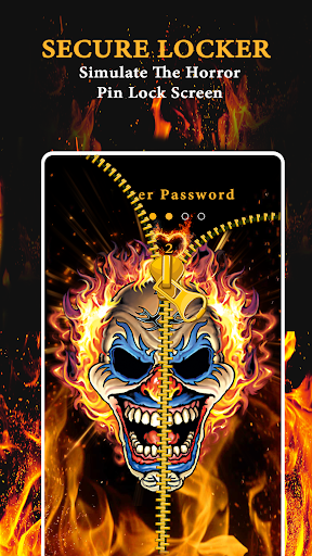 You can use the application to lock your phone screen. Skull lock screen is very easy to use. Inside of the application you will find beautiful backgrounds with animated, fire skulls. You can choose from a zip lock or PIN.