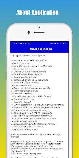 engineering and physics formula for medicals also covers all Physics Formula for 11th/12th, entrance exams in this app. This is an app which provides us a whole revision of physics syllabus in the limited time interval before exams.