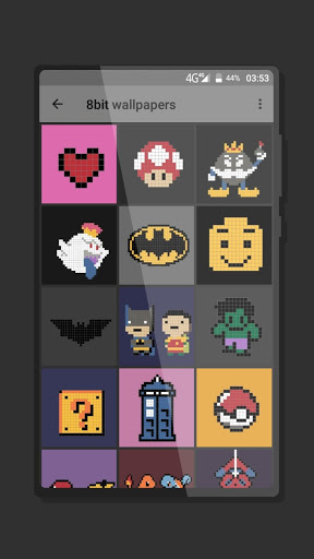 8bit wallpaper is an app that contains pixel art wallpapers, contains huge wallpaper for pixel art or 8bit cartoon for your phone screen and lock screen background