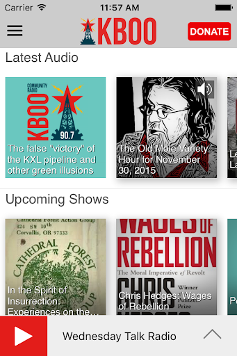 The KBOO Community Radio App allows you to listen to KBOO, pause and rewind the live audio, view the program schedule, and wake up to KBOO with the alarm clock!