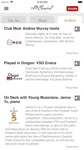 • The All Classical Portland Radio App displays the web page associated with the program or program segment you are listening to On Demand so you can explore for more information.