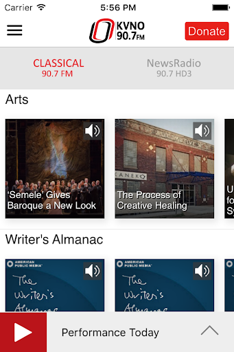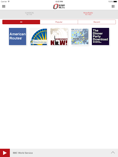 The KVNO Public Radio App allows you to listen to KVNO, pause and rewind the live audio, and view the program schedule for KVNO all at once!