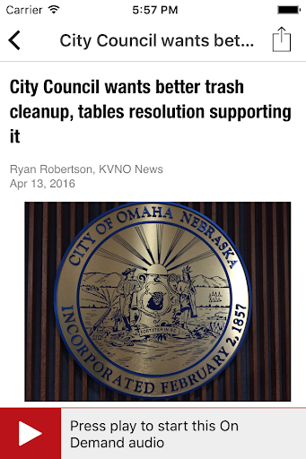 • The KVNO Public Radio App displays the web page associated with the program or program segment you are listening to On Demand so you can explore for more information.